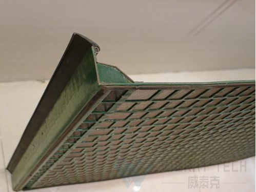 8、筛网一般有上部的筛分层和下部的受力层,要求这2层之间紧密贴合,如果筛网预张紧工艺差,筛网底部的受力层绷紧时,筛分层没有拉紧,筛机工作时筛网上下颤动的距离过大,和筛框接触部分不能有效压紧,这也是引起筛网损坏过快的原因之一。